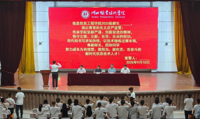 (文:李颖前 李雅洁,图:宦雨辰)9月10日晚,信息工程学院2025级新生开学典礼在学校西区大礼堂举行,活动由副院长王越主持,学院领导班子成员、教师代表、2024级优秀学生代表及2025级全体新生参加。